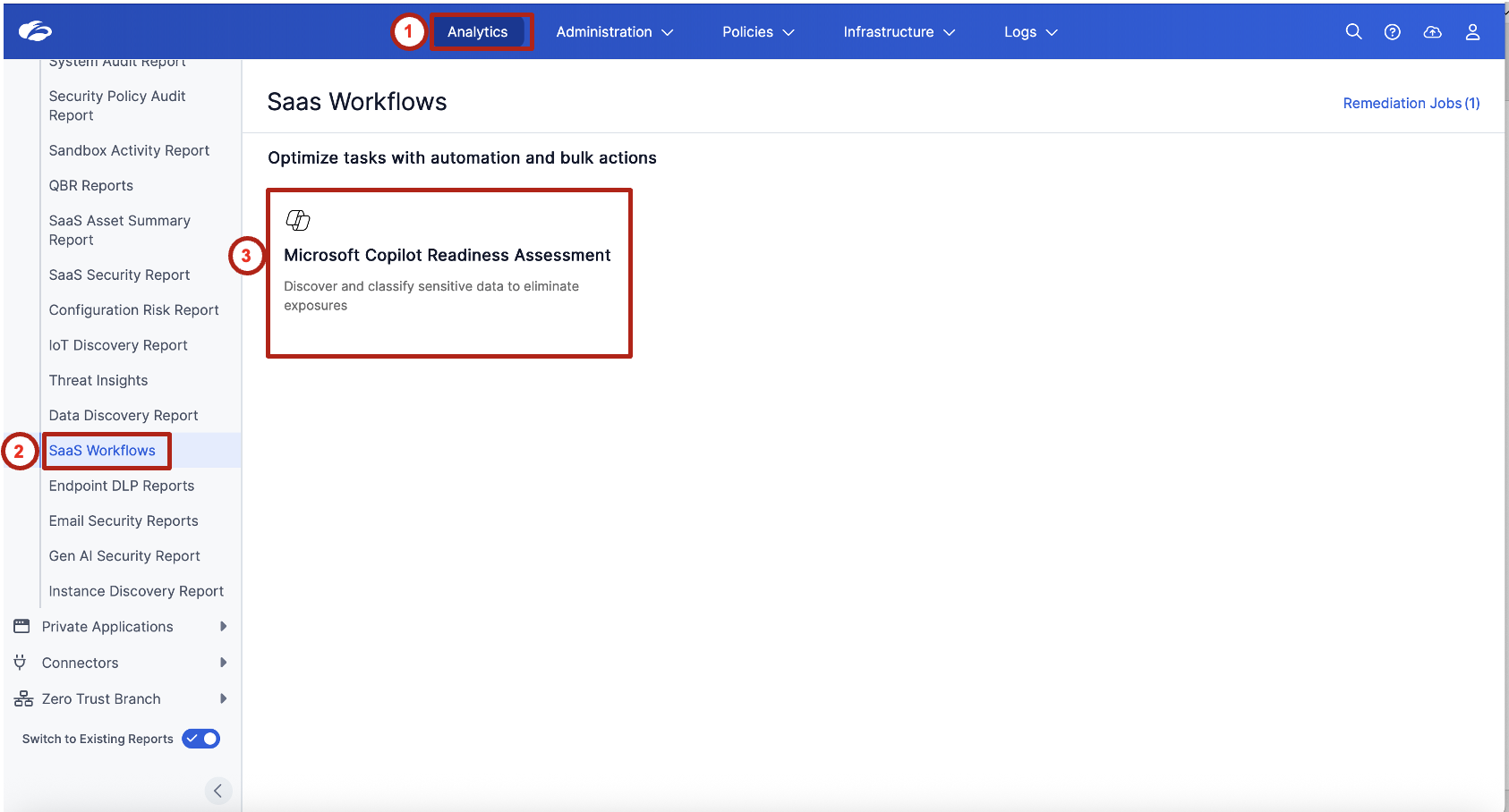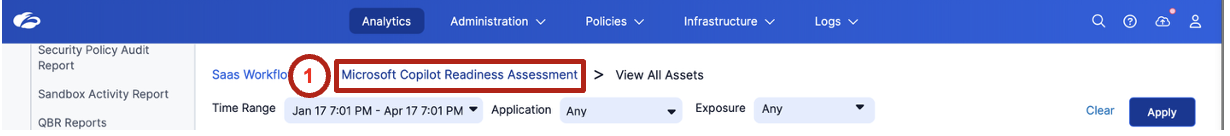 Analytics → SaaS Workflows → Microsoft Copilot Readiness Assessment